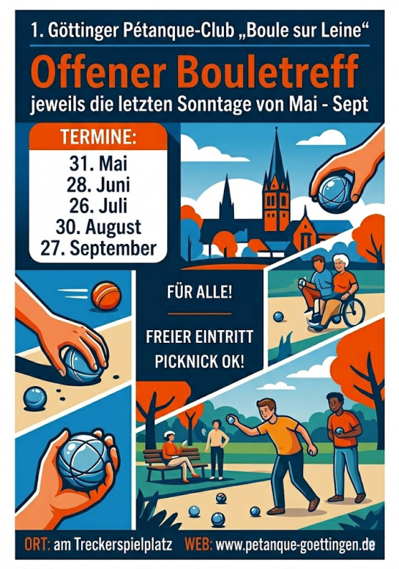 - Wo? Auf dem Bouleplatz neben dem Haus des Sports (Sandweg 5) am Treckerspielplatz.